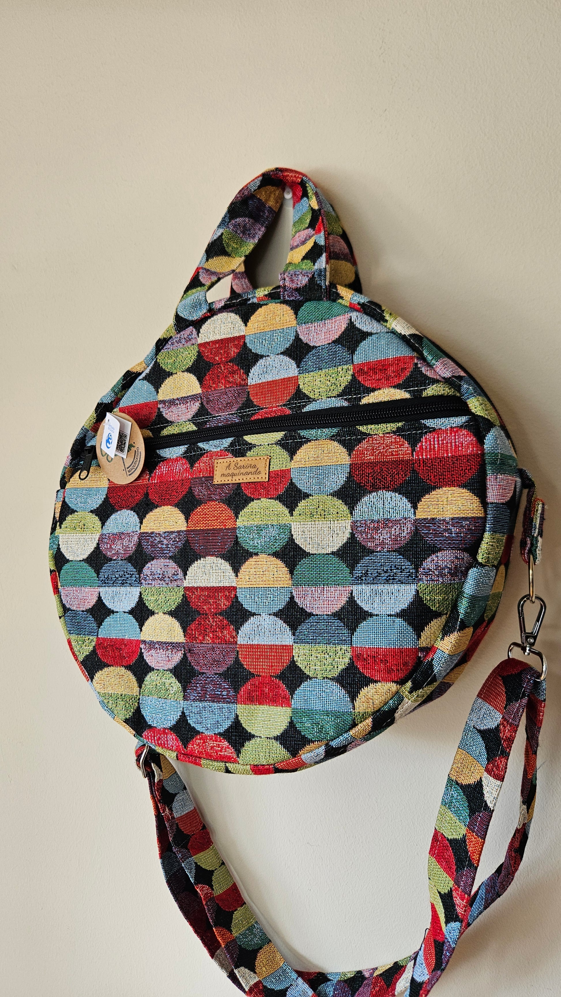 - Asa bandolera con enganches de mosquetón, permite quitala ou poñela según a túa necesidade